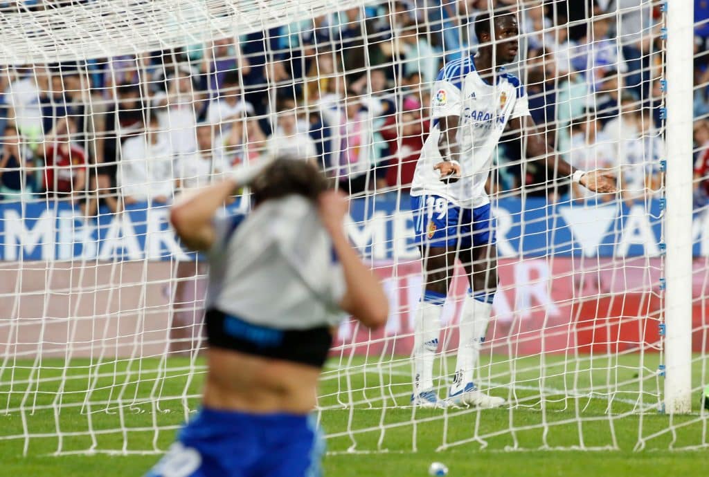 La tarde comenzaba con sonrisas. Y si hay sonrisas, ahí siempre está el risueño y bonachón Pape Gueye. El senegales había dejado un muy buen recuerdo en su último partido en La Romareda, ante el Villarreal B, pero no pudo darle continuidad en la media hora final que ayer le concedió Carcedo. Estuvo impreciso en los controles y errático en las decisiones, no acertó tampoco con un cabezazo en la cornisa del área pequeña tras un muy buen centro de Puche.