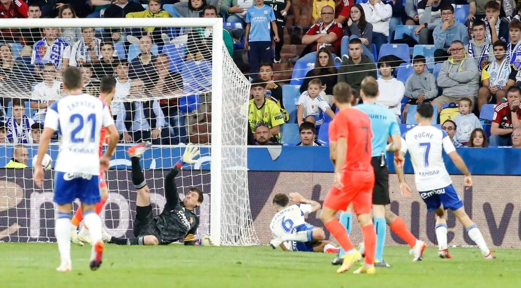 El cabezazo al primer palo de Bakis fue un disparo al corazón y convirtió el desesperado lamento de Cristian en el espejo de la reacción de todos los zaragocistas. No pueden marcarte en el minuto previo al descanso, cuando apenas han creado peligro en tu portería durante toda la primera parte. Y, sobre todo, no puedes conceder un córner en contra por una irresponsable imprudencia como la cometida por Vada en la salida de balón.