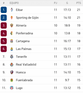 Jon Pérez Bolo, quien fuera un delantero agitador del Athletic de Bilbao en los años 90, está firmando una obra de arte en el Bierzo. Su Ponferradina es un equipo para todas las estaciones, capaz de ir a por su rival y de resistir y lastimar a la contra. Yuri nos va a enterrar a todos y seguirá marcando goles, Enrich y el extremo Dani Ojeda completan un ataque notable -Espiau es baja por sanción y Naranjo no llega por lesión-. Agus Medina imparte cátedras en la mediapunta y Amir Abedzadeh da prestigio al oficio de portero en Irán. No ganan desde hace cinco jornadas y vienen de tres empates consecutivos… Apenas nos diferencian aquellas tres primeras jornadas y llegamos a un tramo de cinco partidos para llenar el granero de puntos. Bienvenidos a esta frontera en el camino.