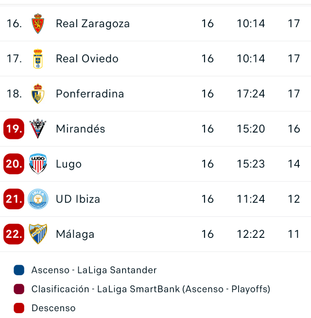 MÁLAGA: Yáñez; Bustinza, Juande, Burgos, Javi Jiménez; Escassi (Genaro, 68), Luis Muñoz (Ramalho, 77); Hervías (Haitam, 77), Febas (Jozabed, 77), Cristian Gutiérrez; y Sol (Loren, 60)