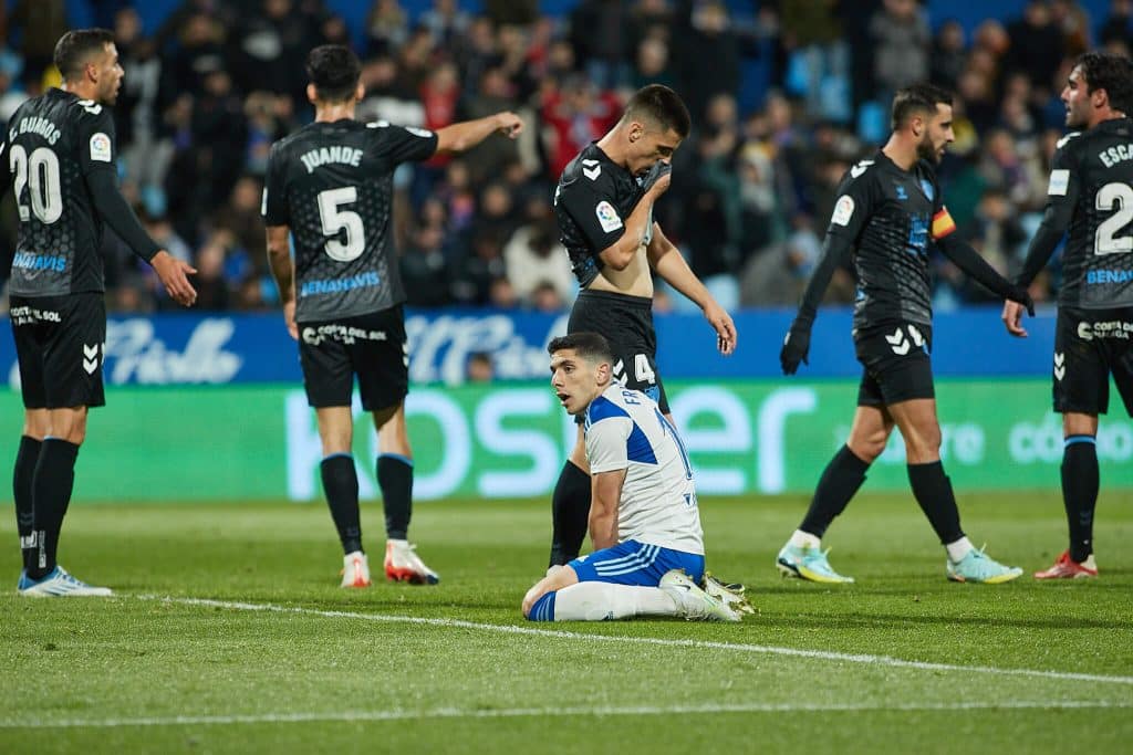 El partido -su desarrollo y su relato- estuvo muy marcado por la inapelable roja directa a Javi Jiménez, por atropellar y doblar el tobillo apoyado de Bermejo a los trece minutos de partido. El Real Zaragoza ya estaba siendo superior al Málaga con igualdad numérica y se volvía a situar ante uno de sus grandes traumas de esta temporada: enfrentarse a un rival que sufre una expulsión. Así como ante el Eibar -que acabó con nueve- y el Alavés se firmó un tratado de impotencia futbolística, aquí la incapacidad vino a la hora de definir: se supo qué hacer con la pelota y cómo atacar los espacios. Y pareció rematarse a una portería de hockey hielo.